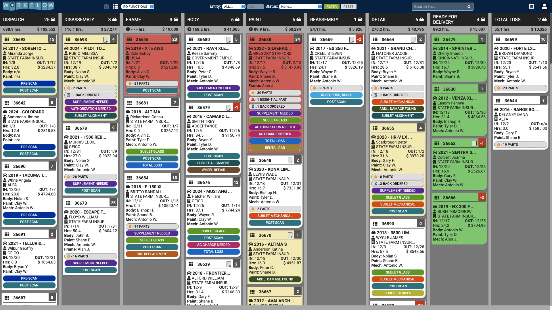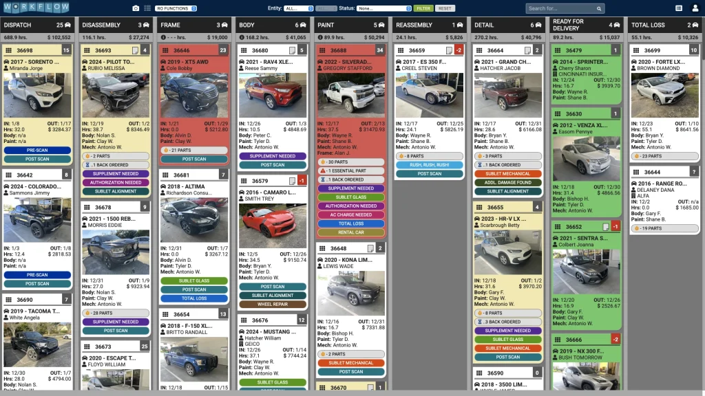 With the simple click of an icon in the header, you can easily toggle between showing vehicle images on an RO card or not. In the header area at the top of the dashboard, click on either the camera icon or list icon to toggle between the two view modes. The icon will be white for the current view mode you’re in and dimmed for other view mode.